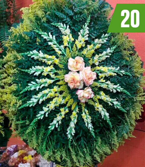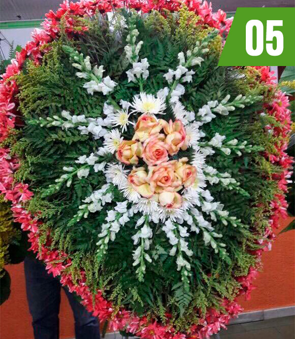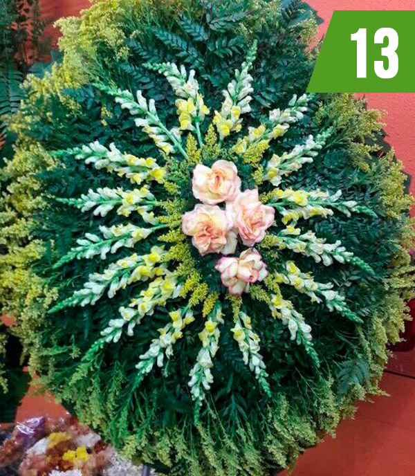 Dedicação na criação e montagem dos arranjos, buscando novas técnicas e aperfeiçoamento das Coroas de Flores.